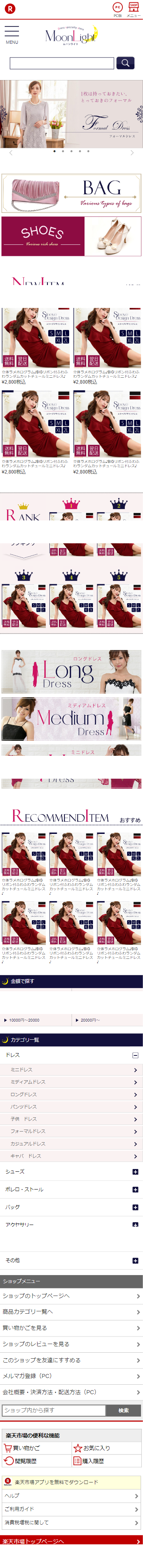 レディースアパレル販売 / デザイン・コーディング対応 / 楽天 PC・スマートフォン対応
