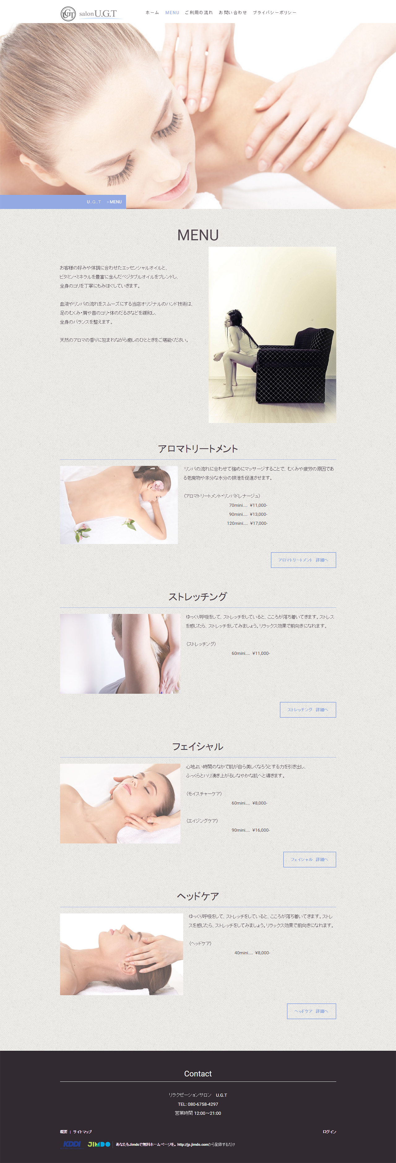 アロママッサージ店舗サイト / Jimdo使用サイト / デザイン・コーディング・全ページ対応