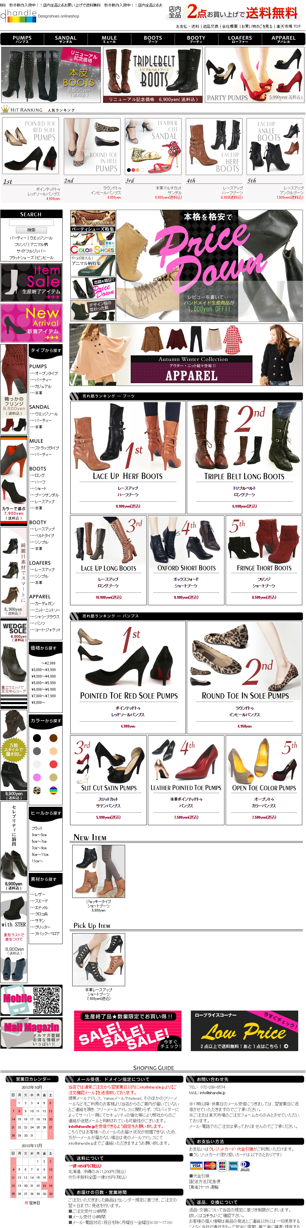 シューズ販売 / TOPページ デザイン・コーディング対応 / 楽天 PC版対応