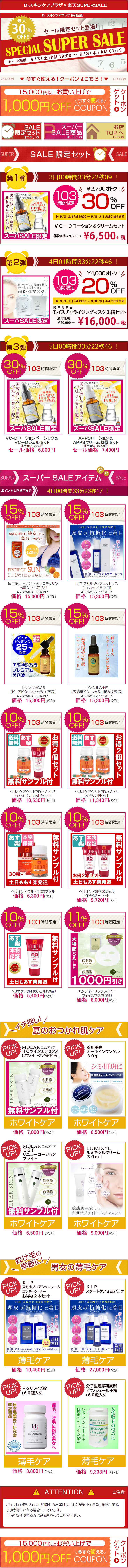 美容系商品販売 / デザイン・コーディング・タイマー設置(javascript)対応 / 楽天 PC・スマートフォン対応